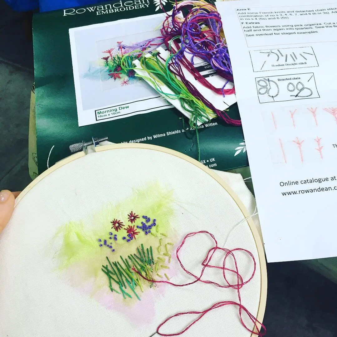 My advice about the Rowandean embroidery kits - choose these if you are happy not to recreate the exact pattern on the pack, and you’re happy to be creative! The threads you receive don’t match the image, however, this makes your design completely unique. Experimentation is encouraged: add more French Knots, Daisy Chains etc as you want. At first, I found this a bit daunting(!!) but by my second kit, I was enjoying the creative freedom.